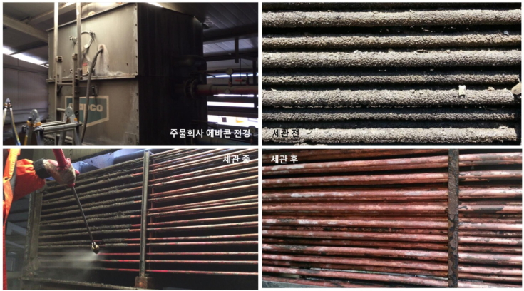 As NCH Korea’s ‘EvaCon(Evaporative Condenser) Washing Service Program’ uses alkaline or neutral chemicals, it may be safely used on materials used on Evaporative Condenser, such as zinc plating and copper. In particular, NCH’s EvaCon(Evaporative Condenser) Washing Service combines chemical washing and machinery washing, and removes more than 90% of sacles without any side effects.