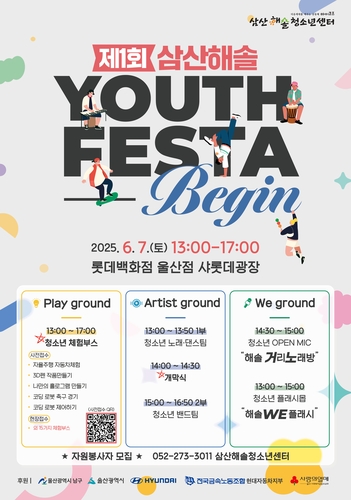 울산 남구(구청장 서동욱)는 오는 6월 7일 오후 1시부터 5시까지 롯데 백화점 울산점 샤롯데광장에서 '제1회 삼산해솔 YOUTH FESTA: BEGIN'을 개최한다고 밝혔다.