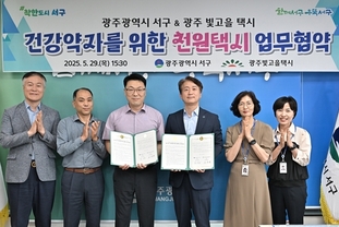 서구는 29일 오후 서구청 구청장실에서 광주빛고을콜택시와 천원택시 사업에 관한 업무협약을 체결했다. 지원 대상은 의료급여 산정특례 대상자(기초의료급여 1종) 360여 명으로 중증 암·난치(희귀)성 질환자, 결핵 및 중증 화상환자 등이 포함된다.