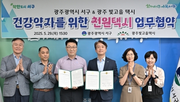 광주광역시 서구(구청장 김이강)는 의료 취약 계층의 교통비 부담을 줄이기 위한 '천원택시'를 6월부터 본격 운영한다. 이 사업은 광주에서 서구가 처음 도입하는 교통복지정책이다. 서구는 29일 오후 서구청 구청장실에서 광주빛고을콜택시와 천원택시 사업에 관한 업무협약을 체결했다. 지원 대상은 의료급여 산정특례 대상자(기초의료급여 1종) 360여 명으로 중증 암·난치(희귀)성 질환자, 결핵 및 중증 화상환자 등이 포함된다. 서구는 이들에게 편도 기준 연간 14회까지 이용 가능한 '천원택시 이용권'을 지급하고, 이용자들은 필요시 광주빛고을콜택시 전용 번호(062-221-6777)로 배차요청을 하면 본인부담금 1천원으로 택시 이용이 가능하다. 서구는 광주권 내 이동 시 최대 2만원, 화순전남대병원은 최대 3만원까지 지원한다. 서구는 올해 중증질환자를 대상으로 천원택시를 운영하고 내년부터 장기요양등급자(1∼3등급), 치매의심환자, 퇴원환자 등 거동이 불편한 노인까지 지원 대상을 확대할 예정이다. 김이강 서구청장은 "교통비 때문에 치료를 미루는 일이 없도록 서구가 복지의 틈새를 메우는 촘촘한 돌봄 행정을 실천